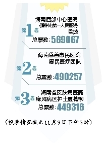 本报海口11月9日讯(记者马珂)今天下午5时,2016年第三届海南省“寻找百姓身边好医护”大型公益活动公众投票环节正式结束,总投票数672余万票。