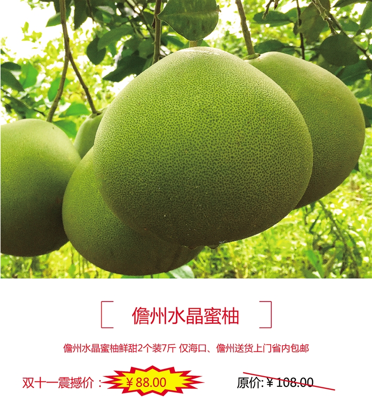 据介绍,儋州积极培育以儋州粽子、儋州蜜柚、儋州红鱼等为代表的九大特色品牌农产品以及多种优质农产品,并充分运用“互联网+”思维,大力扶持电商企业,推动儋州特色农产品销往全国,市场迅速扩大,产品供不应求,农民增收显著。值“11·11”之际,儋州特色农产品121电商平台开展优惠大酬宾活动,一方面是感谢全国消费者对儋州品牌农业发展的长期支持,另一方面也是儋州特色品牌农产品的一次集中展示,将对儋州品牌农业发展起到促进和提升的作用。(本版文图/周月光 张琳)