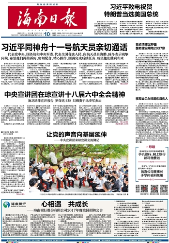海南日报 头版 001 2016-11-101 2016年11月10日 星期四
