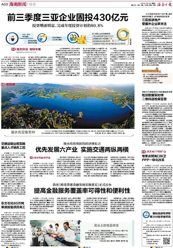 海南日报 海南新闻综合 003 2016-11-101 2016年11月10日 星期四