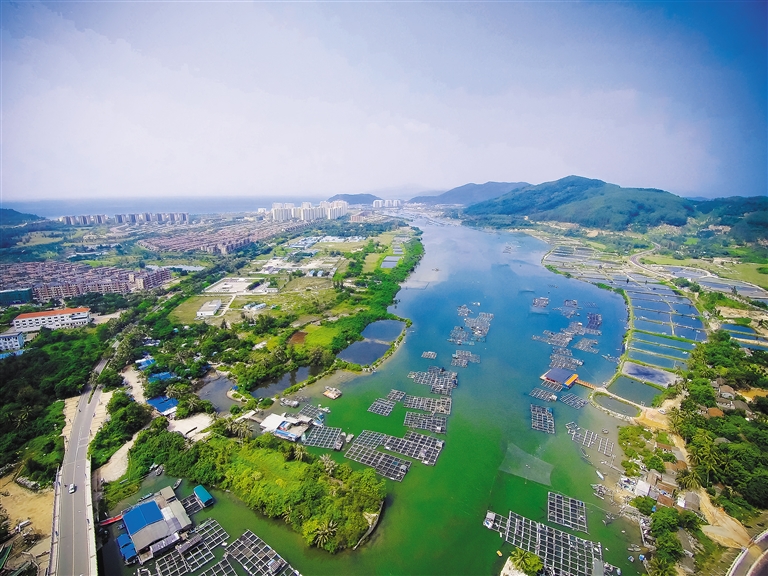 俯瞰万宁老爷海。规划中的老爷海国家级海洋公园,将最大限度保护老爷海澙湖的特殊生态系统及其功能,并整合、利用老爷海和神州半岛丰富的旅游资源和海洋生物资源,发展海洋生态观光旅游、海上休闲娱乐。