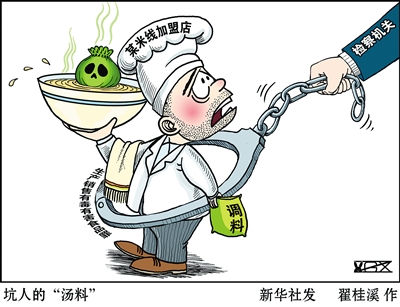 青浦区检方在调查中发现,个别加盟店店主对于汤料中的“秘密”也是心知肚明。一家加盟店的店主朱某和赵某,在得知总店老板曹某被抓后,非但不收手,而且继续销售带有罂粟粉汤料的米线,在被检查时,妄图以不知汤料中添加罂粟壳为借口蒙混过关。最终,朱某和赵某也被判刑。