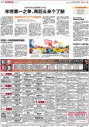 海南日报 体育新闻综合 012 2016-11-121 2016年11月12日 星期六