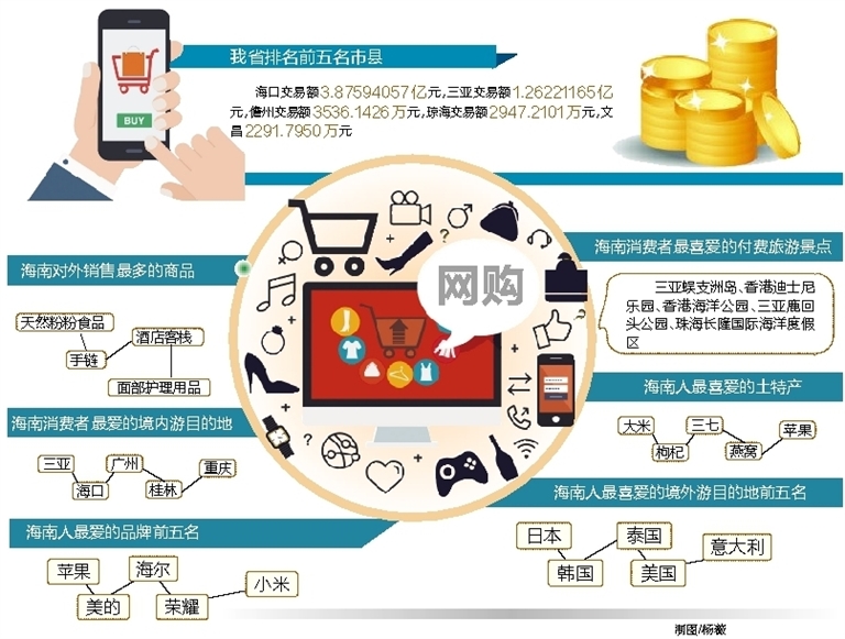 有趣的是,与北方地区消费者最爱购买的产品羽绒服不同,海南人最爱购买的商品是低帮鞋、连衣裙、T恤,还有手机、平板电视等。