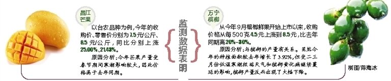 此外,昌江芒果收购均价高于去年,昌江俗称“芒果之乡”,芒果种植历史悠久,目前种植面积有5.8万亩,占全省总面积的10%左右,年产量2.3万吨。
