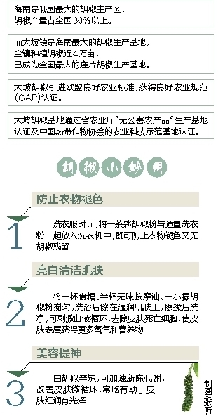 在海南,说起胡椒,人们自然会想到大坡,全国人民餐桌上的胡椒,每10粒就有4粒以上是大坡产。