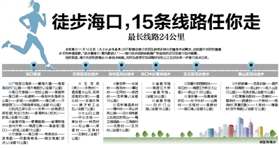 活动现场,海口市旅发委推出15条徒步线路,市民及游客可在闲暇时间约上三五好友来一次海口徒步之旅。