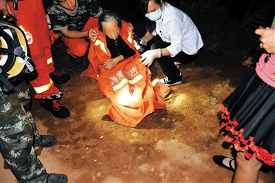 据测量,水沟堤坝大约两米多高,水深约一米。两名消防官兵下水,很快来到老人身边,将老奶奶抱着慢慢将其移至岸边。7分钟后,老奶奶被抬至岸上。因深夜天气微凉,老太太又在水里泡了一阵时间,被冻得瑟瑟发抖。现场一位消防战士,直接脱下自己的外套穿在老奶奶身上。随后,老奶奶被120救护人员送往医院进一步治疗。