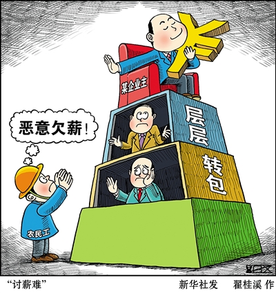 ■ 2016年1月,国务院办公厅印发《关于全面治理拖欠农民工工资问题的意见》。意见要求,要以建筑市政、交通、水利等工程建设领域和劳动密集型加工制造、餐饮服务等易发生拖欠工资问题的行业为重点,健全源头预防、动态监管、失信惩戒相结合的制度保障体系,完善市场主体自律、政府依法监管、社会协同监督、司法联动惩处的工作体系。到2020年,形成制度完备、责任落实、监管有力的治理格局,使拖欠农民工工资问题得到根本遏制,努力实现基本无拖欠。