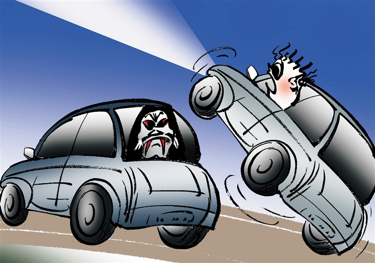 令人生厌的远光灯如何破?恐怖车贴再次来袭,而且据说“卖的很火”。夜间行车,乱用远光灯,会对前车以及对向来车造成干扰,极有可能引发交通事故,因此,对这种不文明行为,车主们是“深恶痛绝”。在此情形下,利用恐怖车贴来“惩罚”后方司机看似合情合理,然而,在这种意外惊吓中,也极易引发交通事故,从这个角度看,使用恐怖车贴与乱用远光灯同样危险。要知道,别人的不文明行为不应成为自己不文明的借口。让恐怖车贴远离我们,需要广大车主们合理使用远光灯、文明驾驶,在一个普遍文明的环境中,恐怖车贴自然就没了市场。这正是: