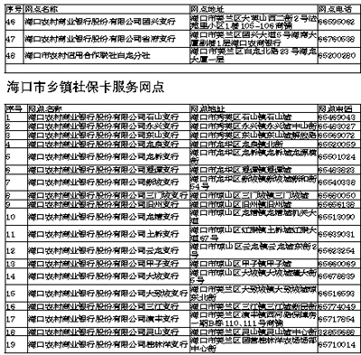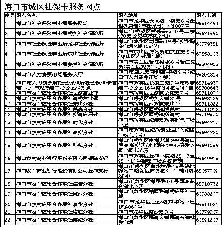 海口市人力资源和社会保障局社会保障卡管理中心: 68571305、68571306