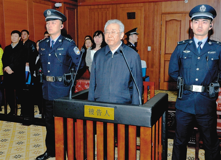 11月17日,被告人陆武成(中)在法庭宣判现场。 当日,陕西省西安市中级人民法院公开宣判甘肃省人大常委会原副主任陆武成受贿案,对被告人陆武成以受贿罪判处有期徒刑十二年六个月,并处罚金人民币一百万元;对陆武成受贿所得财物予以追缴,上缴国库。 新华社发