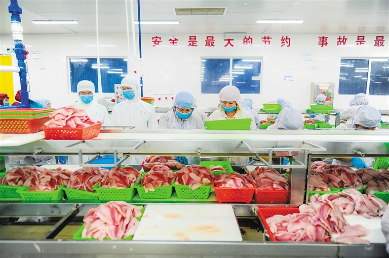 图为海南出入境检验检疫局工作人员在海南翔泰渔业有限公司罗非鱼生产线上检验出口罗非鱼质量。据了解,该局深入出口罗非鱼加工企业严把食品质量关,帮扶企业在“同线同标同质”工程中提质增效、转型发展,助力企业积极开拓国内外市场。本报记者 袁琛 通讯员 王宜泳 刘桂芳 钟丽华 摄