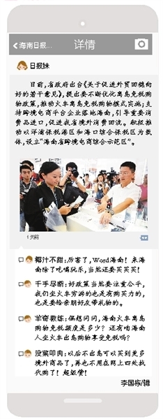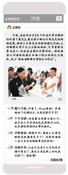 日前,省政府出台《关于促进外贸回稳向好的若干意见》,提出要不断优化离岛免税购物政策,推动火车离岛免税购物模式实施;支持跨境电商平台企业落地海南,引导重要消费品进口,促进我省境外消费回流。积极推动以洋浦保税港区和海口综合保税区为载体,设立“海南省跨境电商综合示范区”。