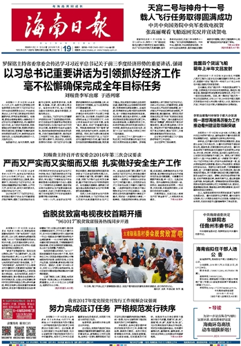海南日报 头版 001 2016-11-191 2016年11月19日 星期六