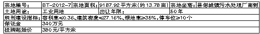 八、其他需要公告的事项:(一)本次出让地块属于工业用地,土地用于县城屠宰场项目建设,以现状土地条件挂牌出让。如地块涉及地上地下电线路、光缆的迁移等费用由竞得人负责。(二)竞得人取得土地使用权后,应严格按照规划要求建设,涉及绿化、环保、消防、交通管理等应符合国家和海南省的有关管理规定。(三)本次成交价款不包括各种税费(相关税、费由竞得人按规定缴纳),挂牌佣金由竞得人按有关规定支付。(四)本次竞买活动进行现场书面报价,不接受电话、邮寄、电子、口头报价。(五)本次挂牌出让事项如有变更,届时以变更公告为准。