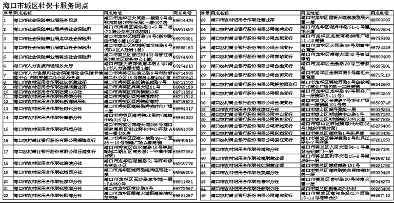 海口市人力资源和社会保障局社会保障卡管理中心: 68571305、68571306