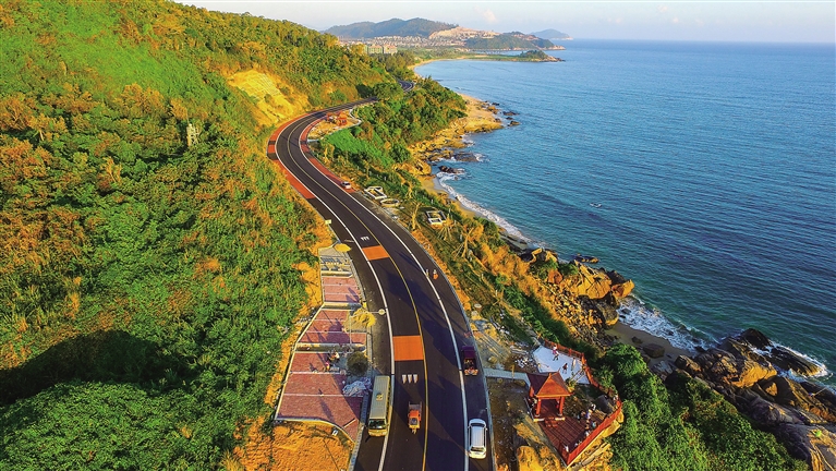 近日,高空鸟瞰万宁石梅湾至大花角滨海旅游公路。据了解,这条旅游公路全长35.24公里,全线串联了石梅湾、南燕湾、神州半岛等多个美丽海湾。为增强旅游公路的服务功能,规划建设有石梅湾东线高速出口处服务区、南燕湾美食广场及旅游集散小镇等,旅客能够随走随看,随停随玩。 本报记者 张茂 摄