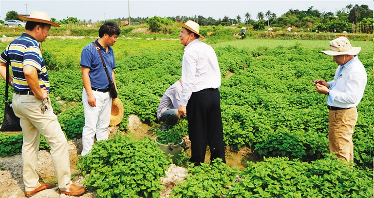 如果说玉米的成功种植让农户们看到了希望,那么耐盐蔬菜的成功引种,则可为老百姓带来了长远的经济效益。江行玉团队根据土壤的盐化程度还种上了番杏、耐盐西红柿等。此外还从美国、日本引进了17种生态型品种,目前他们正在研发适合海南栽培种植的方法。