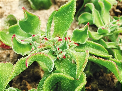 如今,文昌盐渍地上有了冰菜的身影,这也是冰菜第一次在海南种植。它生长旺盛,叶片绿油油的,在太阳照射下反射光线,就像冰晶一样。摘下一片叶子,放进嘴里嚼一嚼,有点咸。