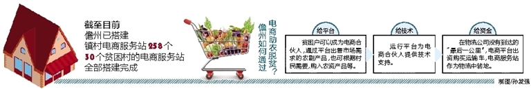 电商运行平台是儋州开展电商助贫困户脱贫过程中的重要力量。在吸纳农产品加工商、工业品供应商、农资产品供应商入驻后,引导消费者线上下单,并将订单分配至村级服务站。