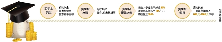 采访中,海南日报记者了解到,师范类院校与综合性大学存在着一定差别。如海南大学,其奖学金评选比例,一般按当年学校划拨经费确定,但评选比例通常不超过参评学生总人数的20%。不仅如此,不同的学校,在数额、奖学金的类别上也有差别。