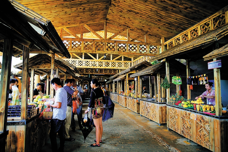 “今年9月中旬翻新升级完毕的惠农街,从原来的52个摊位增至如今的81个,目前已经开业的摊位达到了74个。惠农街里面的摊主都是甘什村的村民,我们把建好的惠农街免费租给他们,统一管理,只收取部分的水电费,就是为了让这里的村民增收,也是要把最纯正的黎族苗族文化展现给来到景区的游客。”景区相关负责人告诉记者,村民在这里赚了钱,而他们的出现,也为景区营造了浓厚的少数民族氛围,吸引了更多的游客。在这个良性循环的过程,让村民鼓了腰包,也让少数民族文化得到了更好的传承和展示。