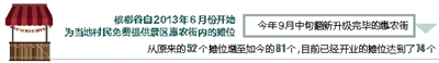 “槟榔谷在惠农街给我免费提供了一个摊位,我现在很少去田里干工了,基本都是在景区摊位卖水果,这样赚得多些。”吉桂英说,从2013年6月份开始,位于三道镇的槟榔谷在景区内开办了一条“惠农街”,为当地村民无偿提供摊位,吸引村民来景区出售本地的特色产品。