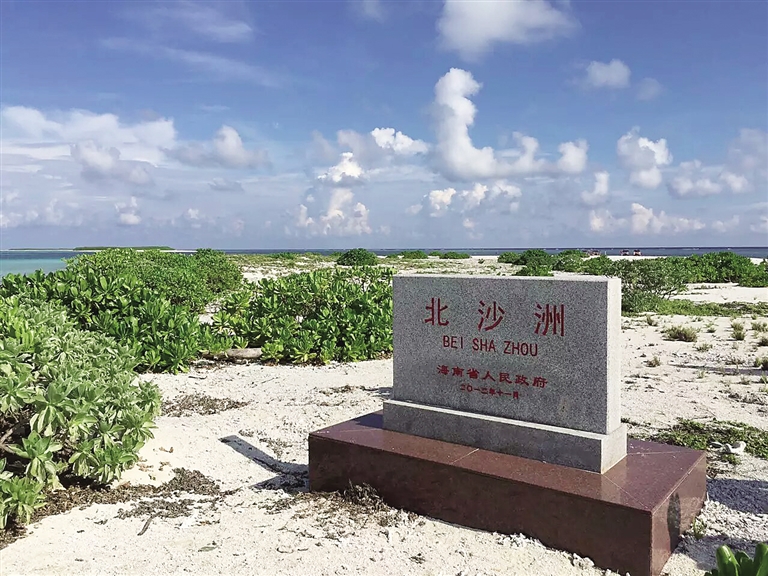 高鹏在来信中说,自己乘坐冲锋舟前往三沙北沙洲岛礁上岛工作,眼前的一幕让人十分震撼:近处,是被一片蔚蓝的植被覆盖的海岛,远处,是碧蓝的天空和蔚蓝的大海以及点点渔船,海天一色,颇为震撼。“三沙的景色一天比一天美,我们可以随处享受美好时光。”