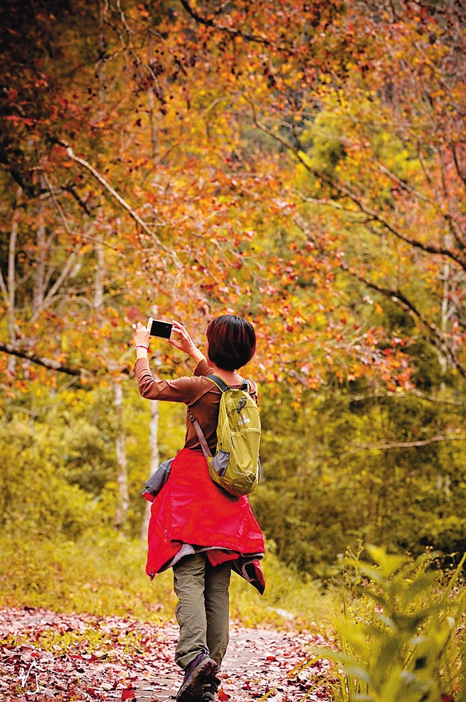 “看红叶,其实更多是放飞心情。远离城市的喧嚣,在原始热带雨林里,人的自然本能野性可尽情释放。”家住五指山的肖泽华最喜欢每年隆冬时节去水满乡看红叶,“累了,可以随地躺下,这里有落叶铺床。热了,可以光着膀子,这里无需遮遮藏藏。渴了,可以掬一捧清泉,绝对的甘甜。吼一嗓子,红叶也会惊颤共鸣。”