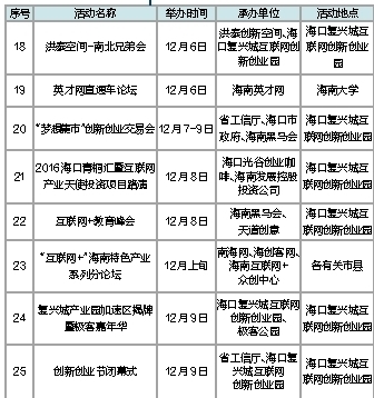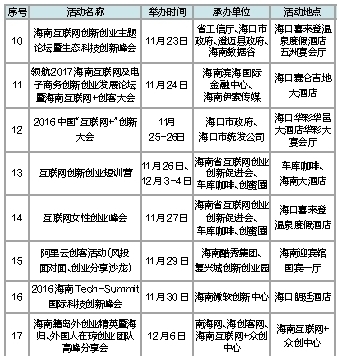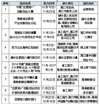 2016年海南“互联网+”创新创业节活动一览表
