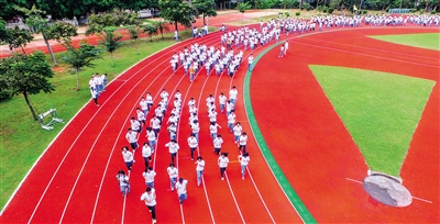 11月21日,海口市第一中学高中年级的4100多名学生在大课间进行健身跑。据了解,海口一中通过健身跑、武术等丰富多彩的室外体育运动,让学生快乐动起来。