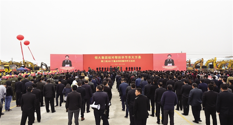 恒大结对帮扶大方县,一改传统的帮扶方式,多领域多管齐下,从根本上解决贫困地区的脱贫问题,并扶持发展当地的“造血”能力,实现真正意义上的可持续发展。相信随着第二批援建项目开工及各项工作持续推进,大方县18万贫困老百姓有望早日过上幸福生活。 (李 达)