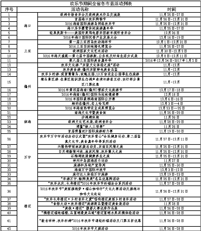 欢乐节期间,系列精彩活动将在主会场海口市全面开花,除此之外,全省其他市县还将带来多项精彩纷呈的活动项目。