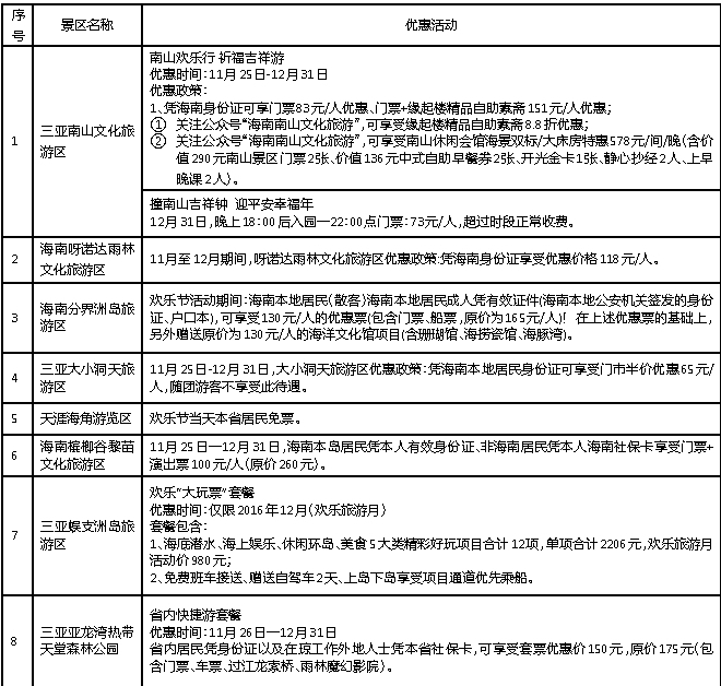 全省欢乐主题旅游月—旅游景区优惠活动