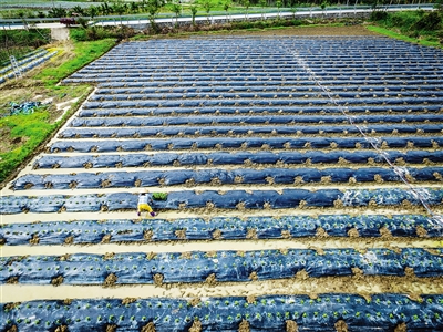 11月24日,琼海市博鳌镇,农民们正忙着把瓜苗、椒苗往地里移植,并悉心做好施肥、定植、浇水等相关工序。目前,瓜菜基地几乎全部完成整垄铺膜工作,椒类蔬菜开始移苗种植,冬种工作正掀起高潮。