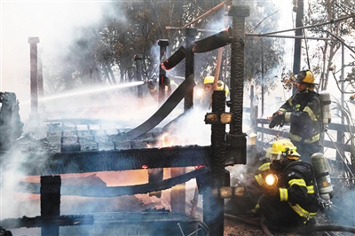 11月24日,在以色列北部海法市,以色列消防员实施灭火作业。 以色列连日来山火蔓延,因火势失控,第三大城市海法24日紧急疏散了6万余名居民。 新华社/法新