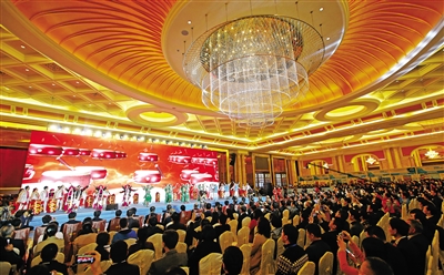 上午9时,洋溢着海南热情与欢乐的歌舞《欢乐鼓舞》拉开了开幕式的序幕,随后马来西亚槟城州文艺表演、波兰卢布斯卡省文艺表演、歌舞《请你常到海南来》等充满国际风情和海南元素的精彩表演一一进行,台上台下一片欢快气氛。