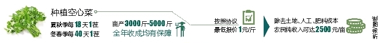 原先,没有技术支持,一户仅能耕种几分地,生产效率自然难提升。“马脚村气候适宜,常年平均气温在15℃以上,具有发展热带农业无可比拟的优势,适合种植空心菜,全年四季均有收成。”三亚南繁科学技术研究院设施农业研究中心主任杨小锋“对症下药”,通过对全年蔬菜品种筛选、栽培管理技术、机械化播种采收等方面提供技术支撑,农民只需提供土地和劳动力,合作社统一保底价收购,保证了产业良性循环。