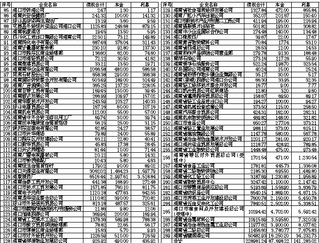 单位:万元(折人民币、1-142项计息截止日2000年3月20日,143-169项计息截止日2006年12月20日)联系人:陈先生 电话:13907548415、13907545188