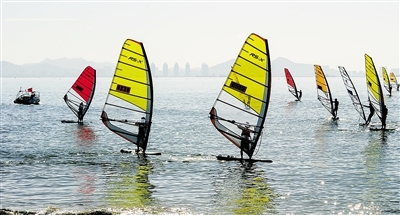 2016中国三亚湾城市帆板邀请赛在三亚湾扬帆竞技。本报记者 武威 摄