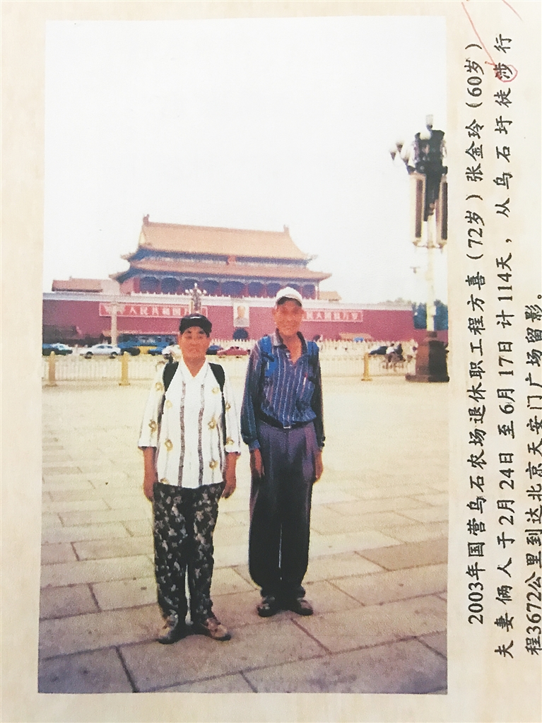 6月14日,经过一路艰辛前行,程方喜夫妇达到北京市房山区。“快到北京了,心情变得明朗起来,在路上遇到一位老人,他告诉我们现在北京‘非典’形势好转,你们去天安门应该没问题。”程方喜记录道。