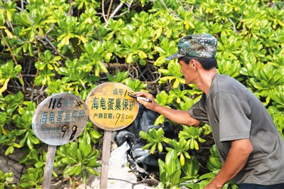 2012年三沙设市后,在晋卿岛、七连屿已建立海龟保护站,将产卵点的保护工作责任分配到人。以北岛为例,岛上登记的15个渔民中有8人——黄宏波、陈山、符永波、陈炎、黄锐、黄程、符永浪、符国琼,受工委的委托参与了海龟的保护工作。角色完全转变了,他们的海龟保护意识也随之增强。