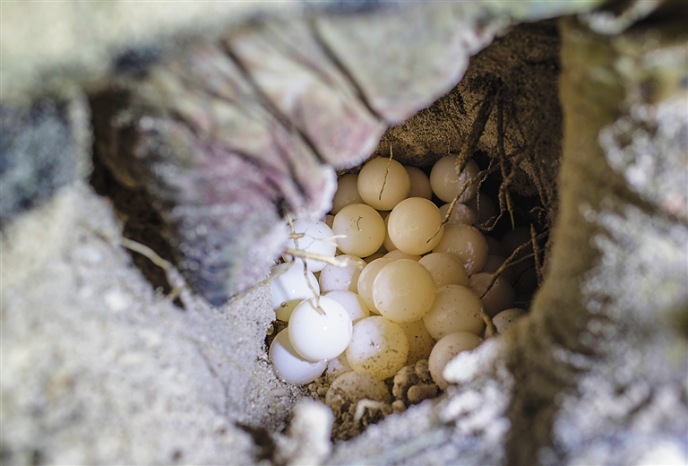 截至今年11月,在北岛,海龟妈妈们产下了152窝海龟蛋,数目较往年明显增多。更为可喜的是,三沙市已在南沙洲、北岛、晋卿岛、甘泉岛、全富岛等多个岛屿监测到海龟产卵、孵化的情况。