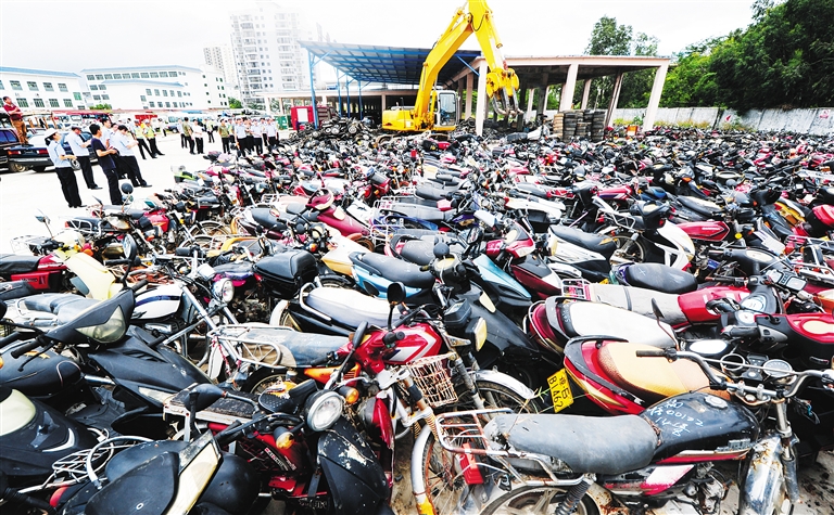 本报三亚11月27日电 (记者孙婧)近日,三亚市公安局交警支队集中销毁了4705辆因交通违法扣留且逾期未处理的车辆(右图,本报记者武威摄),其中二轮电动车3560辆,占比75.7%。接下来,三亚交警还将加大交通秩序管理的力度,重点整治电动车不按道行驶、闯红灯等交通违法行为。