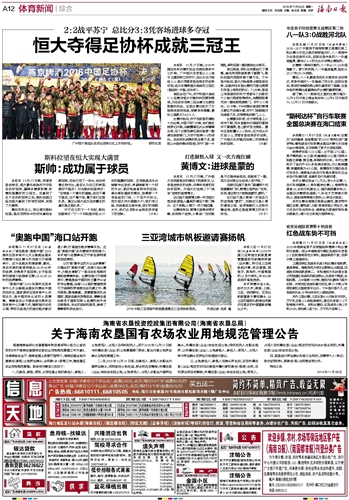 | 海南日报 体育新闻综合 012 2016-11-281 2016年11月28日 星期一 |