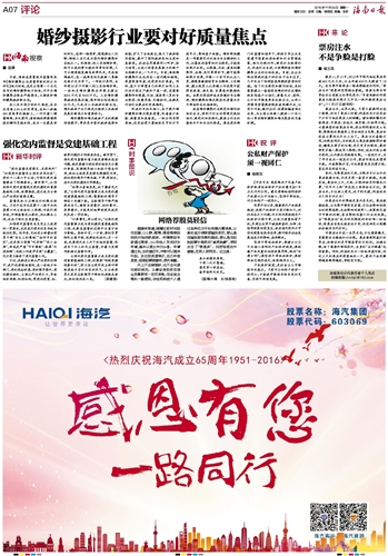 | 海南日报 评论 007 2016-11-281 2016年11月28日 星期一 |