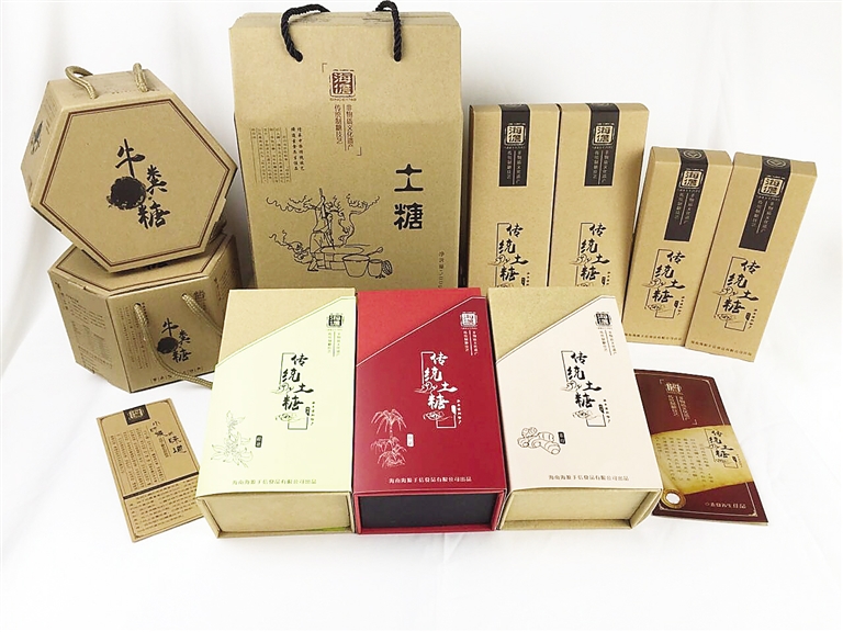 据了解,儋州传统土糖以前都是大条块,一块800克,包装也比较简单,推向全国市场后,海源公司根据消费需求,推出多种规格的包装产品,分为300克装、500克装、800克装以及糖粉和牛粪糖等多种形式,同时,把大块糖分割成小块糖,消费者饮用不再需要费劲切割。