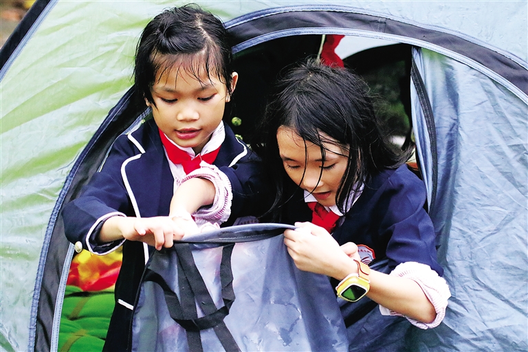 对于陈毓俊来说,他希望通过毅行让孩子们在大自然中能愉快地学习,更为重要的是,能够通过这次经历培养团队合作精神,给予孩子们身心上的锻炼。“我们四个女生学会了搭帐篷,大家分工合作,很快就搭好了!”三年级的符天喜通过“移动教室”又掌握了一项新技能。