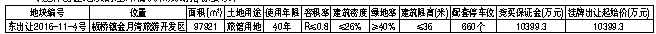 二、竞买事项:(一)中华人民共和国境内外的法人和其他组织(除法律、法规和政策性文件另有规定及经核实有闲置土地的单位外)均可参加竞买。属境外机构(含港、澳、台地区)申请参与竞买的,按照规定需提交商务主管部门核发的《外商投资企业批准证书》和工商主管部门核发的《营业执照》。本次挂牌出让地块不接受联合竞买;必须按挂牌出让公告规定的时间内把竞买保证金存入东方市国土资源局指定账户(以竞买保证金入账时间为准)。(二)本次国有建设用地使用权挂牌出让按照价高者得原则确定竞得人。(三)本次挂牌出让宗地的详细资料和具体要求(详见挂牌出让文件)。申请人可于2016年12月5日至2016年12月28日到东方市国土资源局办公楼三楼规划信息岗(或海南省政务服务中心二楼22号窗口)获取挂牌出让文件及向我局提交书面申请。交纳竞买保证金的截止时间为2016年12月28日16:00。经审核,申请人按规定交纳竞买保证金,具备申请条件的,东方市国土资源局将在2016年12月28日17:00前确认其竞买资格。(四)本次国有建设用地使用权挂牌出让活动在海南省政府会展楼二楼省公共资源交易服务中心土地交易厅进行。挂牌起始时间为:2016年12月20日8:00;挂牌截止时间为:2016年12月30日15:00;(五)挂牌时间截止时,有竞买人表示愿意继续竞价的,转入现场竞价,通过现场竞价确定竞得人。(六)本次挂牌出让不接受电话、信函、电子邮件及口头竞买申请。(七)竞买成交当天签订《成交确认书》,并在10个工作日内与我局签订《国有建设用地使用权出让合同》,竞买保证金自动转作受让地块的出让价款,余款须于出让合同签订后60日内一次付清,出让合同签订后30日内必须缴纳出让价款50%的首付款。(八)受让人取得土地使用权后,应严格按照规划要求建设。涉及水务、绿化、环保、消防、交通管理等应符合国家和海南省的有关规定。(九)成交价款不含各种税、费(耕地占用税及相关税费由竞得人按有关规定缴纳),挂牌佣金和公证费按有关规定收取。(十)其它事项:挂牌的地块以现状土地条件出让。本次挂牌出让事项如有变更,以届时变更公告为准。(十一)本公告未尽事宜详见《东方市国有建设用地使用权挂牌出让手册》,该手册所载内容为本公告的组成部分。联系人:郭小姐;联系电话:0898-25594930 0898-65303602;地址:东方市二环南路西侧东方市国土资源局;省政务服务中心二楼22号窗口。
